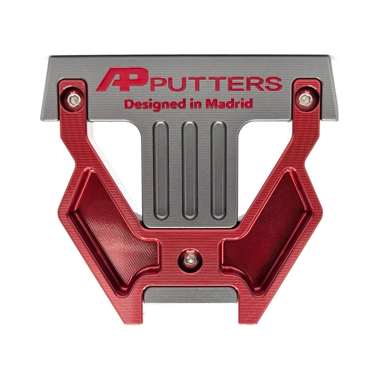 Segundo putter tipo Mallet, este modelo viene con una estructura en forma de herradura. Su color negro mate como toda la gama de AP PUTTERS y su color rojo en líneas y letras, hacen que sea un diseño muy atractivo. En este modelo como innovación hemos incluido en su diseño dos pesos laterales que nunca se han visto en ningún modelo, estos pesos consiguen equilibrar los golpes descentrados de la cara a la vez que regulan el peso de la cabeza a gusto del jugador lo cual consigue minimizar los fallos del jugador. Recomendable para todo tipo de niveles.