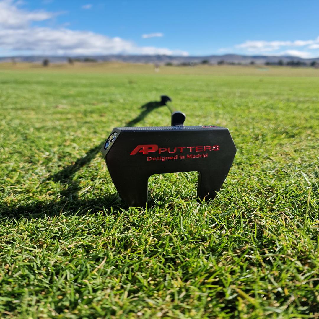 Primer putter Mallet de AP PUTTERS, otro tipo de forma de patear para todo tipo de niveles, es la evolución del golf conocido como MALLET o MAZA reinventa las normas del juego en le green, mayor estabilidad y control de la línea del putt. Creado en dos piezas acero forjado y aluminio, se caracteriza por una sensación de toque diferente, una forma de alinearse mas sencilla gracias a sus marcas, tamaño de la cabeza y su varilla instalada al centro de la cara.